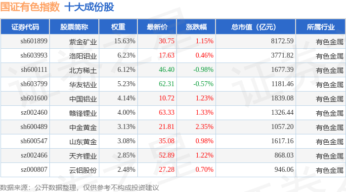 近10日内国证有色(399395)指数成份股做了调整,新纳入了5只股票。