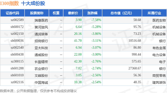 资金流向方面,I300(399416)指数成份股当日主力资金净流出合计44.51亿元,游资资金净流入合计5.04亿元,散户资金净流入合计39.47亿元。成份股资金流向详情见下表: