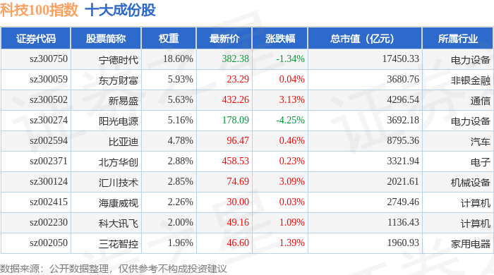 证券之星消息,12月10日,科技100(399608)指数报收于4173.37点,涨0.0%,成交1647.13亿元,换手率1.51%。当日该指数成份股中,上涨的有60家,中瓷电子以10.0%的涨幅领涨,下跌的有38家,阳光电源以4.25%的跌幅领跌。