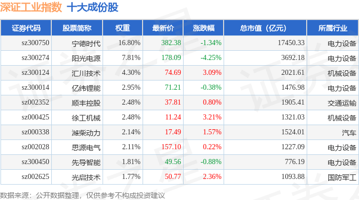 证券之星消息,12月10日,深证工业(399615)指数报收于4130.81点,跌0.08%,成交1160.39亿元,换手率1.9%。当日该指数成份股中,上涨的有96家,星源材质以8.13%的涨幅领涨,下跌的有60家,航天发展以6.28%的跌幅领跌。