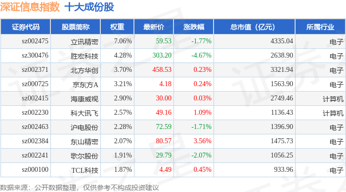 证券之星消息,12月10日,深证信息(399620)指数报收于5492.06点,跌0.19%,成交1641.05亿元,换手率2.12%。当日该指数成份股中,上涨的有73家,赛微电子以6.82%的涨幅领涨,下跌的有65家,胜宏科技以4.67%的跌幅领跌。