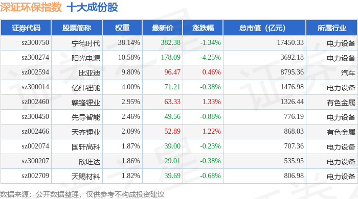 证券之星消息,12月10日,深证环保(399638)指数报收于7456.5点,跌0.83%,成交552.7亿元,换手率1.0%。当日该指数成份股中,上涨的有20家,迈为股份以7.67%的涨幅领涨,下跌的有19家,阳光电源以4.25%的跌幅领跌。