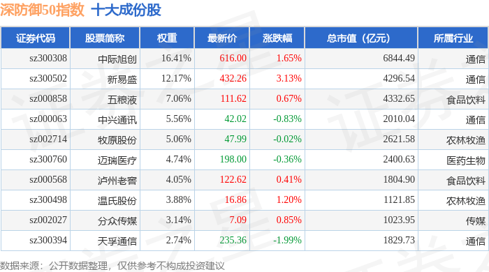 深防御50(399671)指数十大成份股详情如下:
