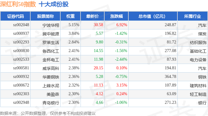 证券之星消息,12月10日,深红利50(399672)指数报收于4109.01点,涨0.48%,成交105.0亿元,换手率1.15%。当日该指数成份股中,上涨的有31家,宁波华翔以6.92%的涨幅领涨,下跌的有18家,亚太科技以3.07%的跌幅领跌。