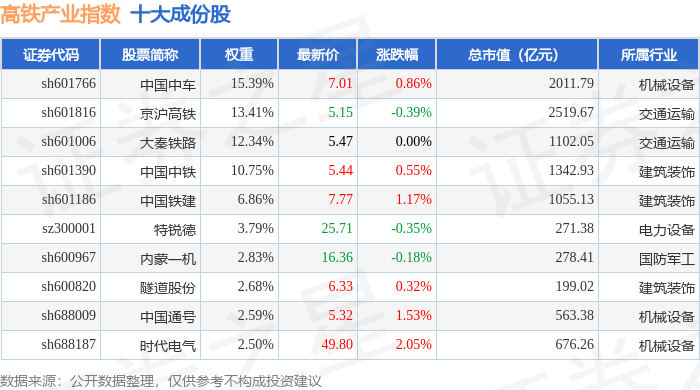 近10日内高铁产业(399807)指数成份股做了调整,新纳入了4只股票,剔除了4只股票。