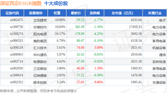 深证民企ESGR(470056)指数十大成份股详情如下: