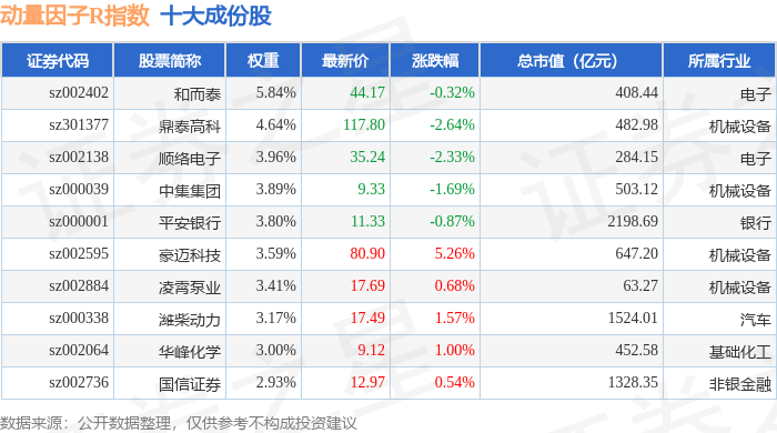 动量因子R(480057)指数十大成份股详情如下: