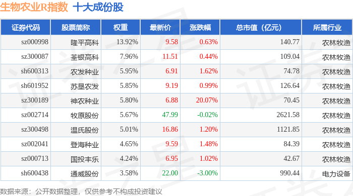 近10日内生物农业R(480072)指数成份股做了调整,新纳入了7只股票。