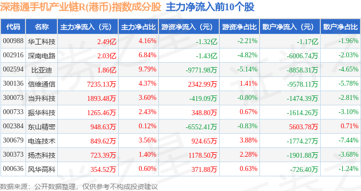 深港通手机产业链R(港币)(483010)指数十大成份股详情如下: