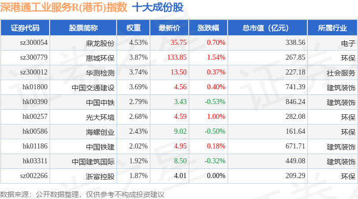 深港通工业服务R(港币)(483056)指数十大成份股详情如下: