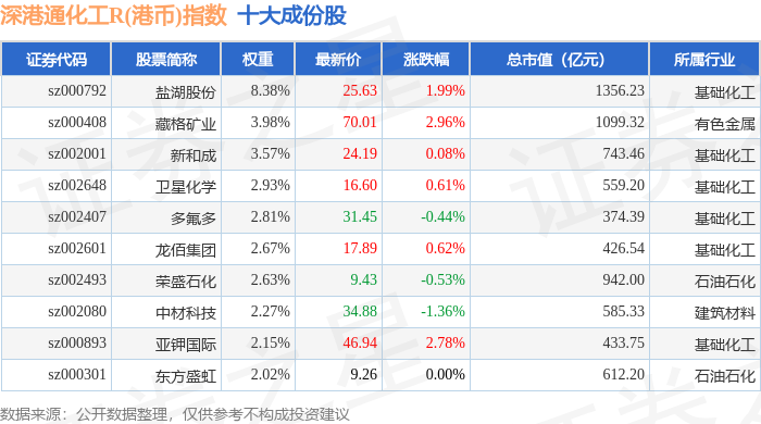 深港通化工R(港币)(483064)指数十大成份股详情如下:
