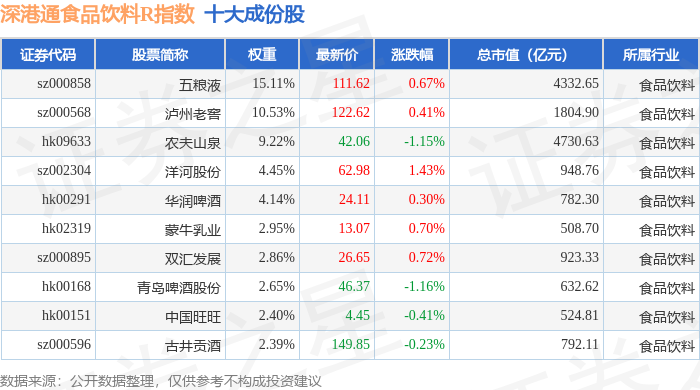 深港通食品饮料R(483065)指数十大成份股详情如下: