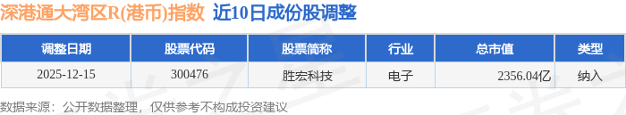 近10日内深港通大湾区R(港币)(483090)指数成份股做了调整,新纳入了1只股票。