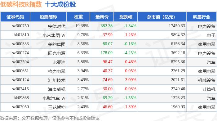 证券之星消息,12月10日,低碳科技R(483160)指数报收于4247.88点,跌0.37%,成交750.11亿元,换手率0.8%。当日该指数成份股中,上涨的有29家,迈为股份以7.67%的涨幅领涨,下跌的有20家,阳光电源以4.25%的跌幅领跌。