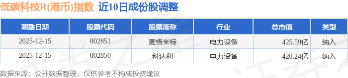 近10日内低碳科技R(港币)(483161)指数成份股做了调整,新纳入了2只股票。
