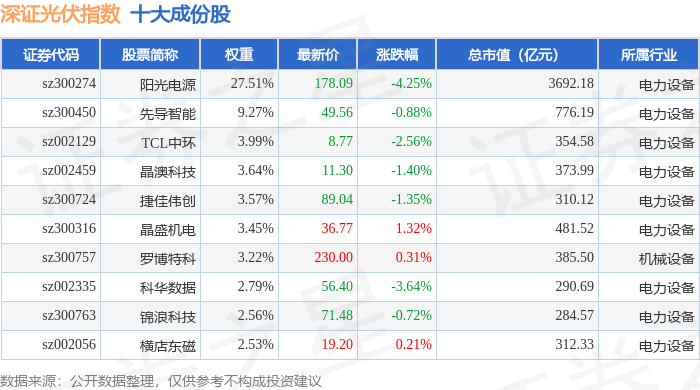 深证光伏(970035)指数十大成份股详情如下: