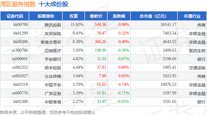 近10日内湾区服务(980011)指数成份股做了调整,新纳入了1只股票。