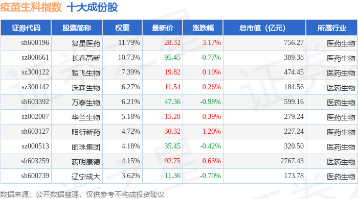 近10日内疫苗生科(980015)指数成份股做了调整,新纳入了2只股票。
