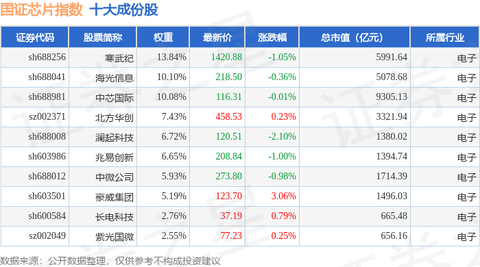 近10日内国证芯片(980017)指数成份股做了调整,新纳入了1只股票。