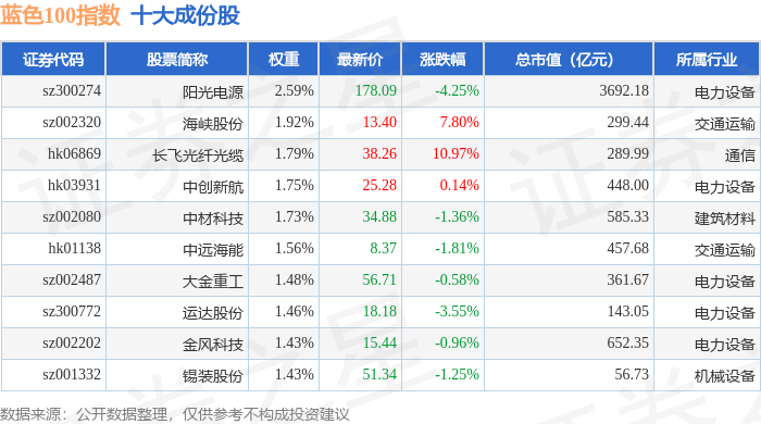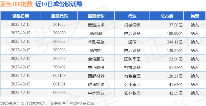 近10日内蓝色100(980068)指数成份股做了调整,新纳入了9只股票。