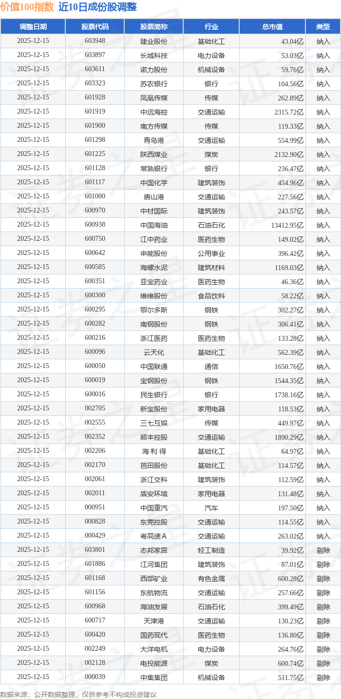 近10日内价值100(980081)指数成份股做了调整,新纳入了36只股票,剔除了10只股票。