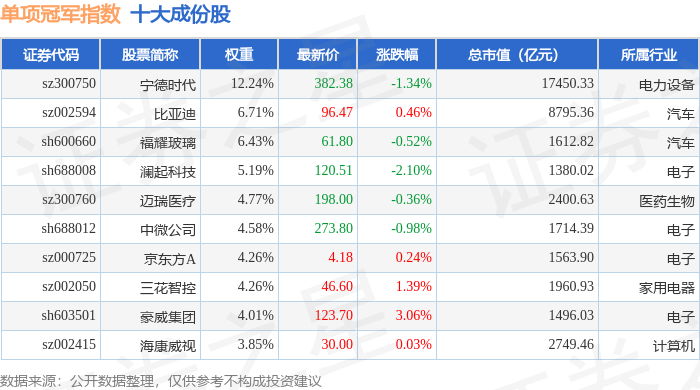 近10日内单项冠军(980150)指数成份股做了调整,新纳入了5只股票。