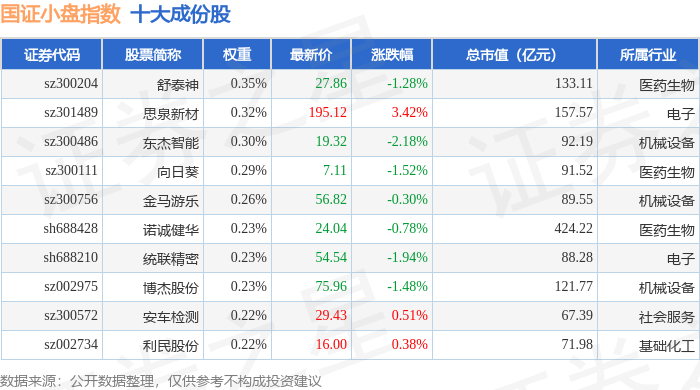 证券之星消息,12月10日,国证小盘(980202)指数报收于1758.84点,跌0.1%,成交1865.98亿元,换手率3.8%。当日该指数成份股中,上涨的有468家,神农种业以20.07%的涨幅领涨,下跌的有999家,佳华科技以10.1%的跌幅领跌。