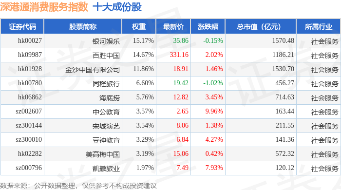 证券之星消息,12月10日,深港通消费服务(983045)指数报收于2693.63点,涨1.17%,成交85.01亿元,换手率1.14%。当日该指数成份股中,上涨的有28家,中公教育以9.96%的涨幅领涨,下跌的有14家,粉笔以5.49%的跌幅领跌。