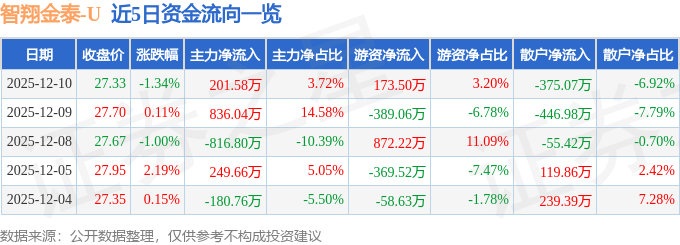 证券之星消息,截至2025年12月10日收盘,智翔金泰(688443)报收于27.33元,下跌1.34%,换手率1.7%,成交量1.98万手,成交额5421.56万元。