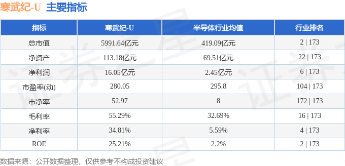 该股主要指标及行业内排名如下: