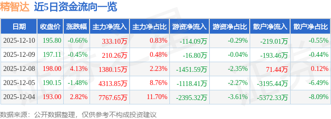 12月10日的资金流向数据方面,主力资金净流入333.1万元,占总成交额0.83%,游资资金净流出114.09万元,占总成交额0.29%,散户资金净流出219.01万元,占总成交额0.55%。