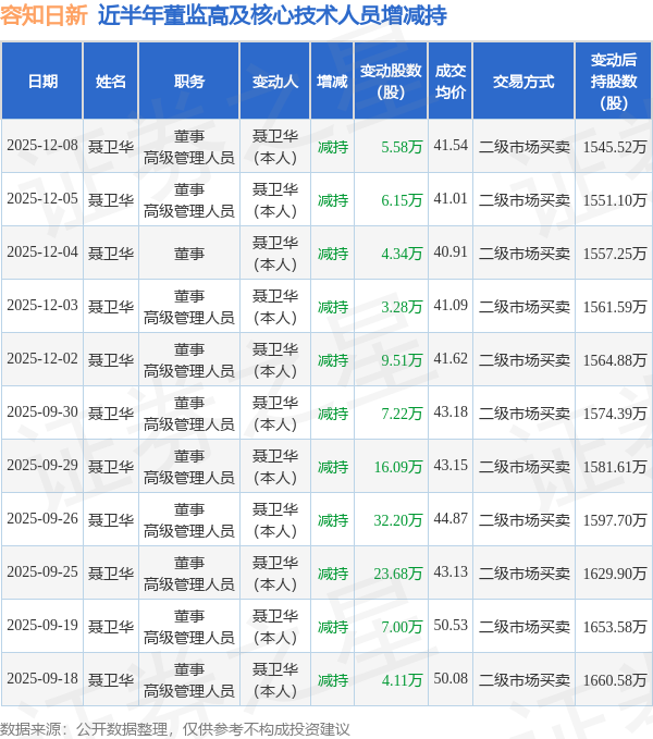 容知日新近半年内的董监高及核心技术人员增减持详情如下: