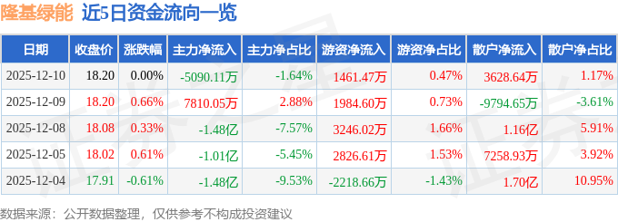 证券之星消息,截至2025年12月10日收盘,隆基绿能(601012)报收于18.2元,上涨0.0%,换手率2.27%,成交量171.88万手,成交额31.13亿元。