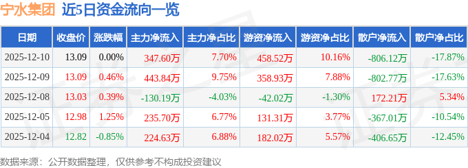 12月10日的资金流向数据方面,主力资金净流入347.6万元,占总成交额7.7%,游资资金净流入458.52万元,占总成交额10.16%,散户资金净流出806.12万元,占总成交额17.87%。