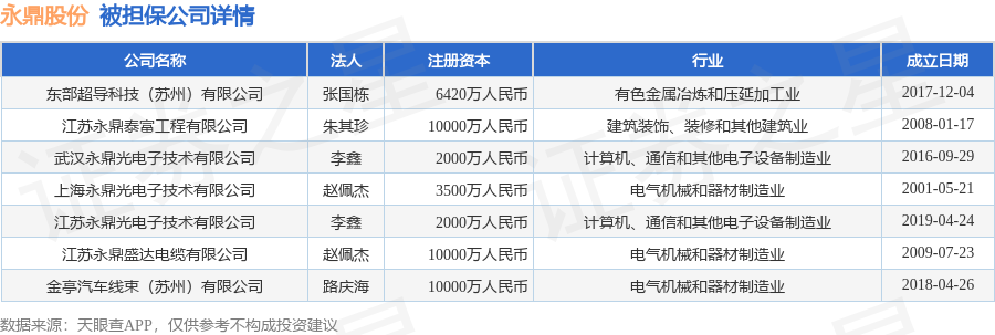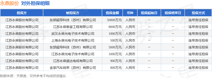永鼎股份12月9日披露8笔对外担保,被担保公司7家。对外担保明细如下表: