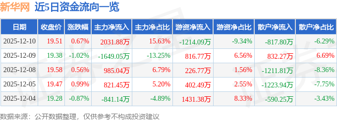 证券之星消息,截至2025年12月10日收盘,新华网(603888)报收于19.51元,上涨0.67%,换手率0.99%,成交量6.69万手,成交额1.3亿元。