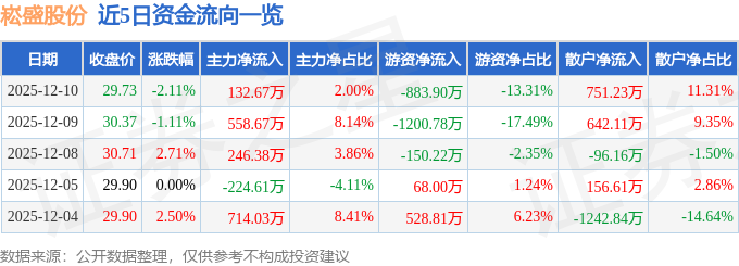 12月10日的资金流向数据方面,主力资金净流入132.67万元,占总成交额2.0%,游资资金净流出883.9万元,占总成交额13.31%,散户资金净流入751.23万元,占总成交额11.31%。
