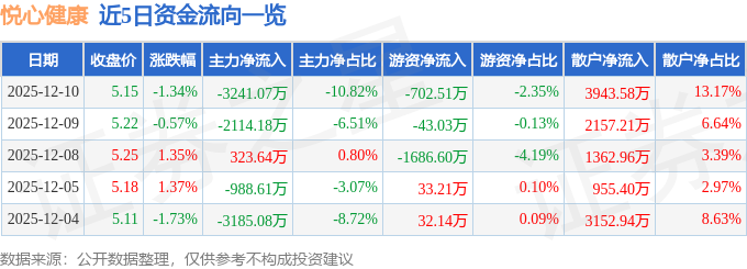 证券之星消息,截至2025年12月10日收盘,悦心健康(002162)报收于5.15元,下跌1.34%,换手率6.37%,成交量58.47万手,成交额3.0亿元。