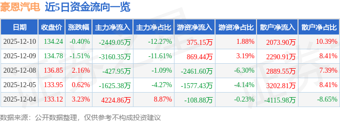 12月10日的资金流向数据方面,主力资金净流出2449.05万元,占总成交额12.27%,游资资金净流入375.15万元,占总成交额1.88%,散户资金净流入2073.9万元,占总成交额10.39%。