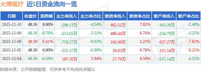 证券之星消息,截至2025年12月10日收盘,大博医疗(002901)报收于48.16元,上涨0.0%,换手率0.47%,成交量1.37万手,成交额6586.13万元。