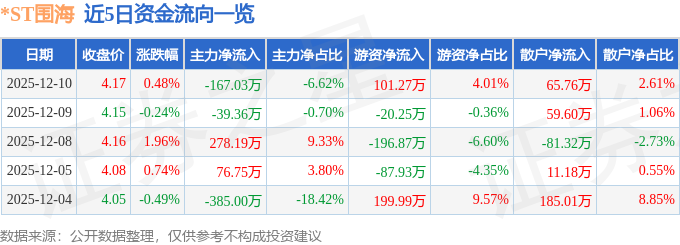 12月10日的资金流向数据方面,主力资金净流出167.03万元,占总成交额6.62%,游资资金净流入101.27万元,占总成交额4.01%,散户资金净流入65.76万元,占总成交额2.61%。