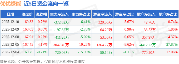 证券之星消息,截至2025年12月10日收盘,优优绿能(301590)报收于169.32元,上涨0.76%,换手率4.02%,成交量3463.0手,成交额5807.74万元。