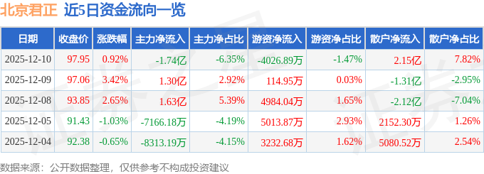 证券之星消息,截至2025年12月10日收盘,北京君正(300223)报收于97.95元,上涨0.92%,换手率6.71%,成交量28.22万手,成交额27.44亿元。
