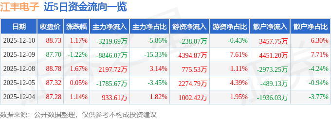 12月10日的资金流向数据方面,主力资金净流出3219.69万元,占总成交额5.86%,游资资金净流出238.07万元,占总成交额0.43%,散户资金净流入3457.75万元,占总成交额6.3%。