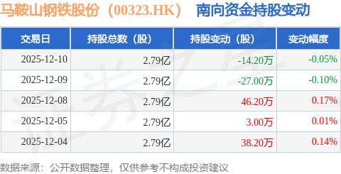 证券之星消息,12月10日南向资金减持14.2万股马鞍山钢铁股份(00323.HK)。近5个交易日中,获南向资金增持的有3天,累计净增持46.2万股。近20个交易日中,获南向资金增持的有9天,累计净增持803.0万股。截至目前,南向资金持有马鞍山钢铁股份(00323.HK)2.79亿股,占公司已发行普通股的16.07%。