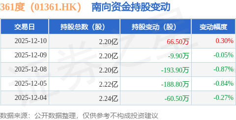 证券之星消息,12月10日南向资金增持66.5万股361度(01361.HK)。近5个交易日中,获南向资金减持的有4天,累计净减持386.6万股。近20个交易日中,获南向资金减持的有16天,累计净减持1294.3万股。截至目前,南向资金持有361度(01361.HK)2.2亿股,占公司已发行普通股的10.65%。