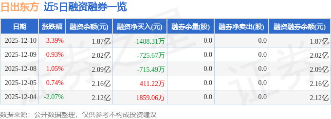 证券之星消息,截至2025年12月10日收盘,日出东方(603366)报收于10.06元,上涨3.39%,换手率8.79%,成交量71.43万手,成交额7.09亿元。