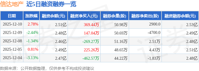 证券之星消息,截至2025年12月10日收盘,信达地产(600657)报收于3.7元,上涨2.78%,换手率1.32%,成交量37.57万手,成交额1.37亿元。