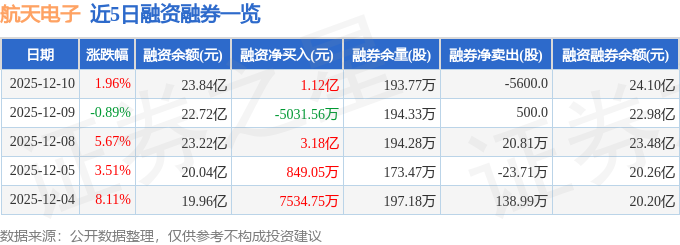航天电子融资融券信息显示,融资方面,当日融资买入6.38亿元,融资偿还5.25亿元,融资净买入1.12亿元,净买入额两市排名第11。融券方面,融券卖出11.41万股,融券偿还11.97万股,融券余量193.77万股,融券余额2625.58万元。融资融券余额24.1亿元。