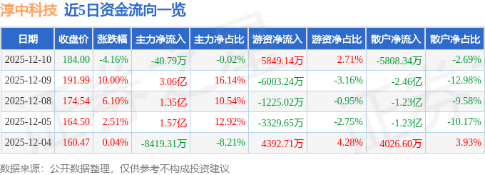 12月10日的资金流向数据方面,主力资金净流出40.79万元,占总成交额0.02%,游资资金净流入5849.14万元,占总成交额2.71%,散户资金净流出5808.34万元,占总成交额2.69%。
